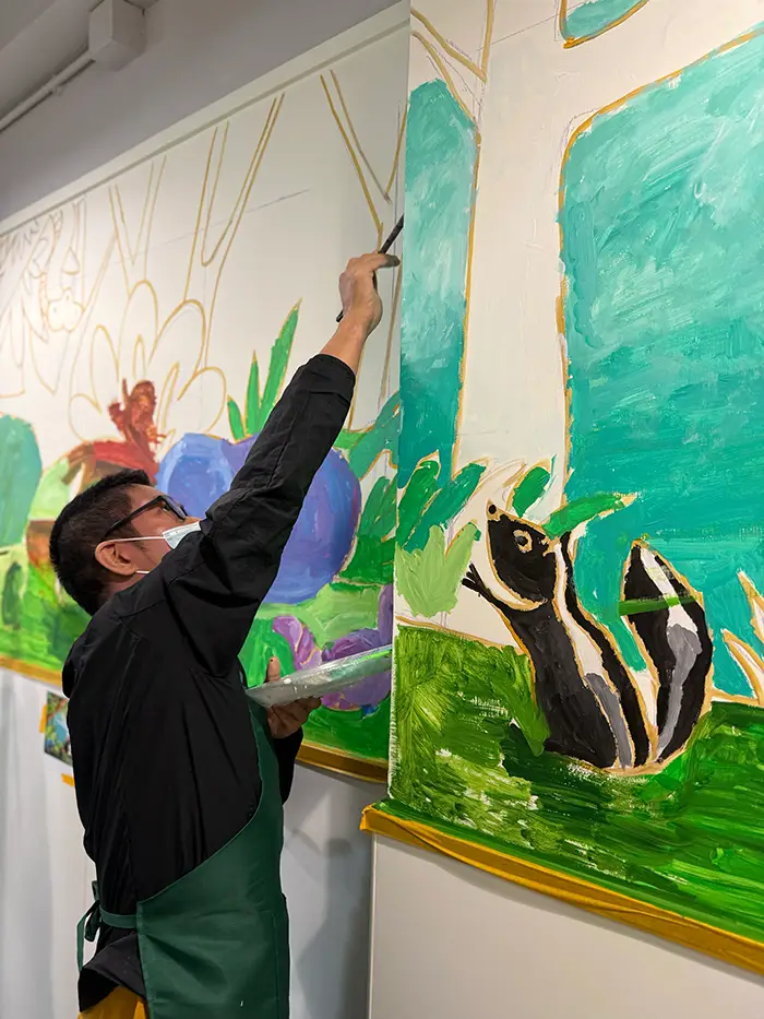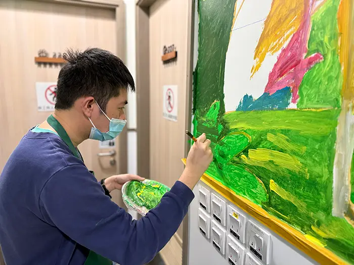 活動中,我們鼓勵每位參與者隨心創作,表達自我。在義工的從旁協助下,大家大膽地調配顏色、描繪圖案,將內心的快樂與想像力,盡情綻放在畫布上。整個空間充滿了藝術的自由與接納的溫暖。